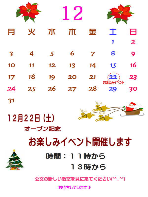 公文 耳成駅前教室 2月開講します。12月22日オープンイベント開催します。1月18日から無料体験予約受付中です。
